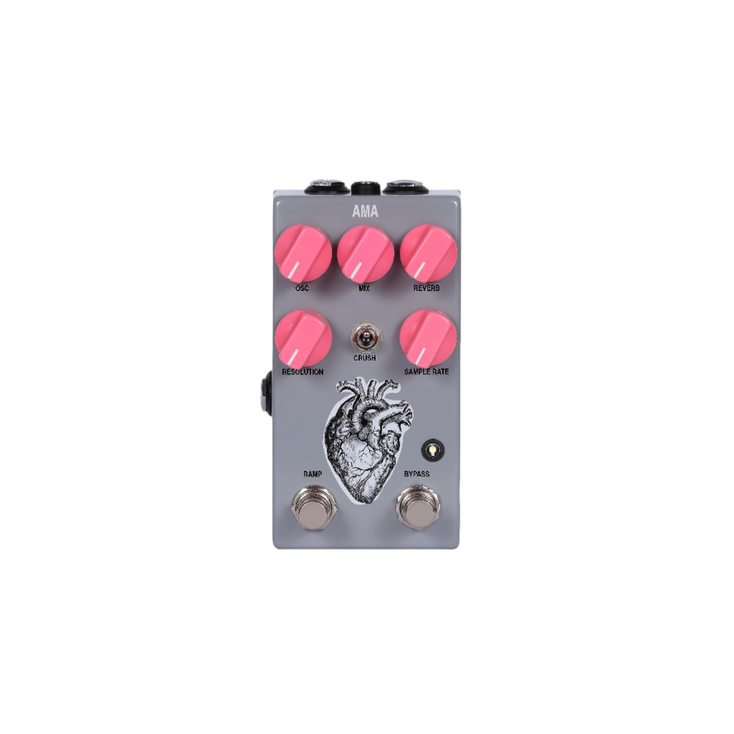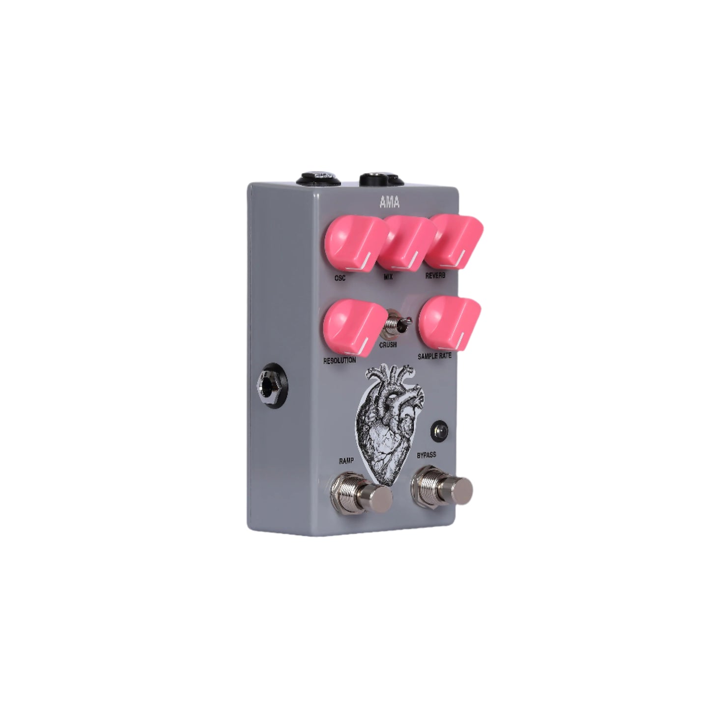 The AMA V.2 offers up to 4 different control parameters for the reverb (OSC, MIX, REVERB and RAMP) and 2 for the re-worked and now more musical bit crusher which is still placed after the reverb (RESOLUTION and SAMPLE RATE).