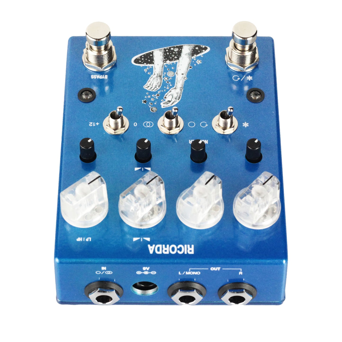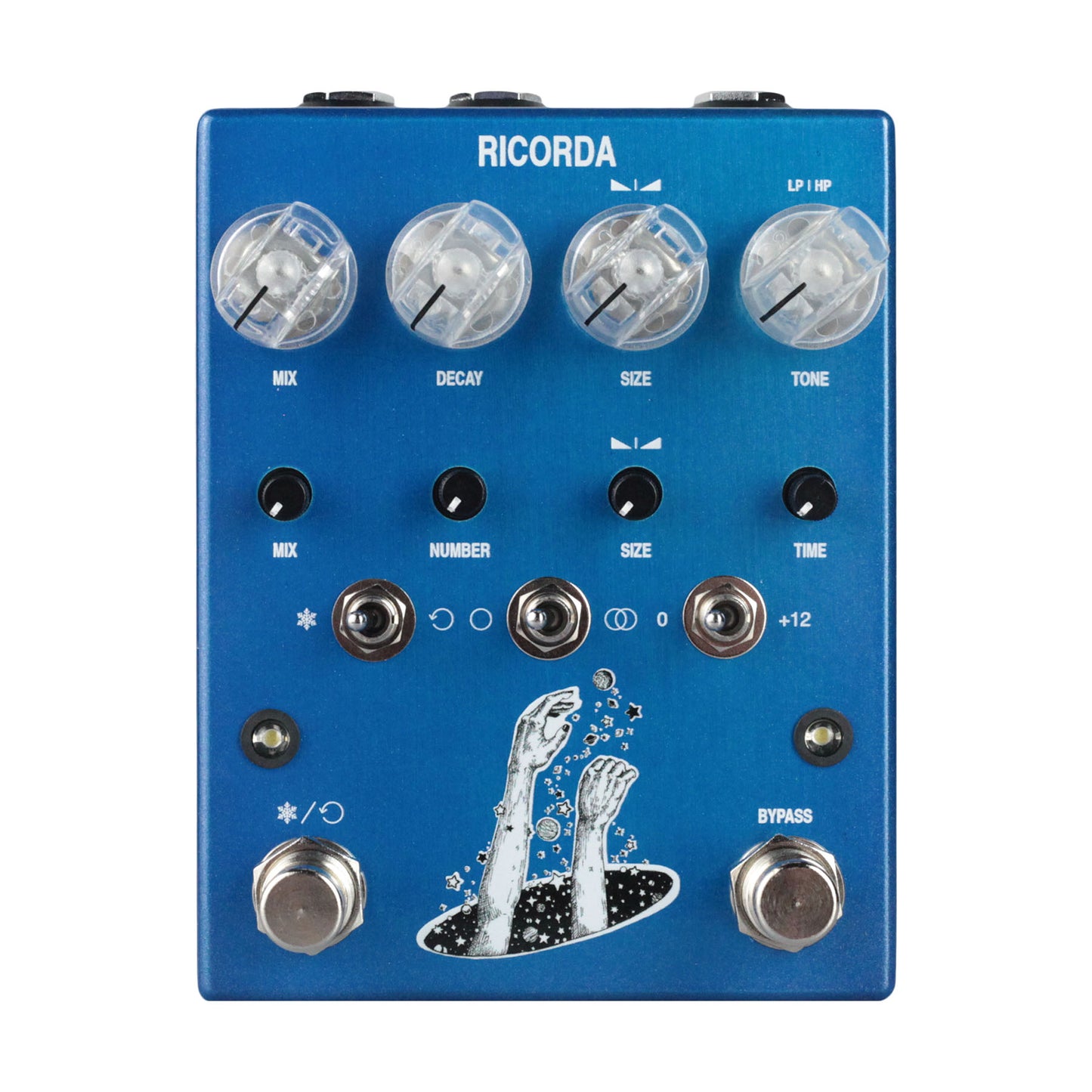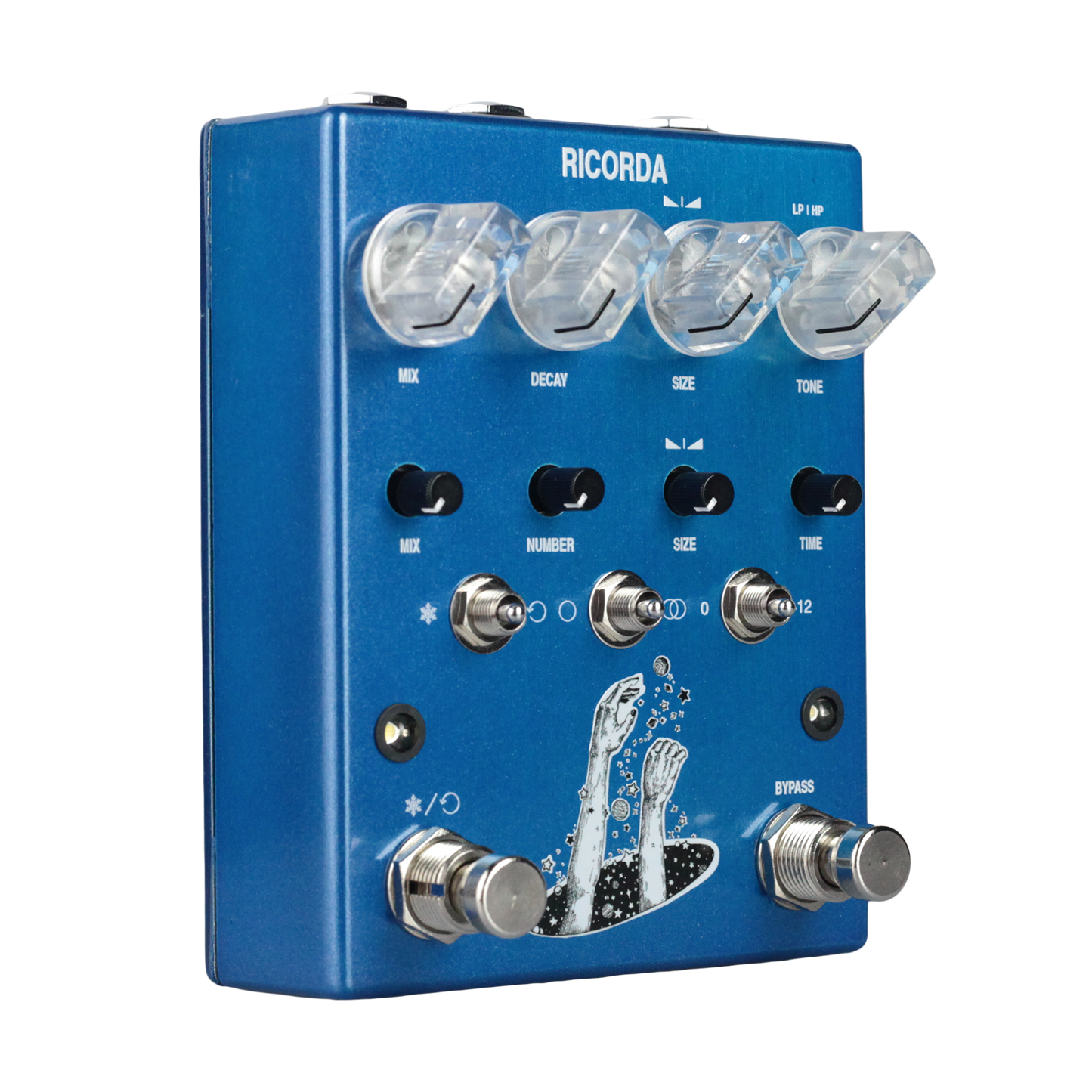 Developed on an incredibly powerful DSP (which is often used in modular synthesizers industry more than the effects pedals one), RICORDA provides a multitude of parameters for sculpting and shaping the reverberant space. From controlling the density and size of the grains to modulating their feedback and stereo spread, the possibilities for sonic exploration are virtually limitless. With each adjustment, the reverberant environment evolves by revealing new dimen- sions and sonic possibilities, also thanks to the freeze/loop feature and the “hidden” secondary mode as well.