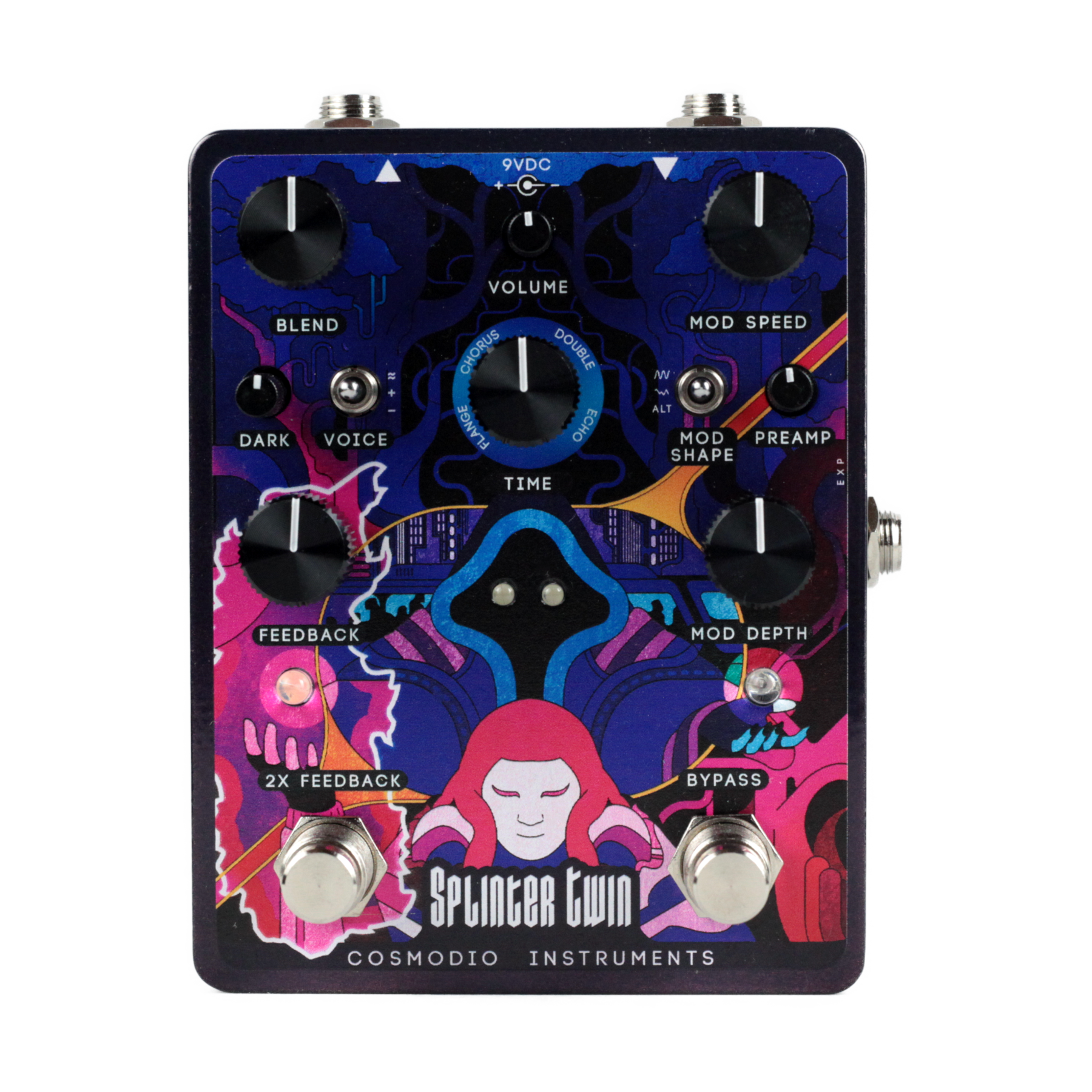 Splinter Twin is your sonic familiar. It clones your signal, alters that clone in time, pitch, texture, phase and feedback, and then re-combines the altered clone with your original signal to create something altogether new.