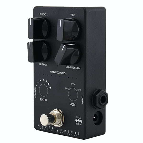 The Hyper Luminal Compressor features the first hybrid design in a compressor pedal: an analog VCA controlled by a digital side-chain allowed us to capture and include the characters of some of the most legendary compressors in history while keeping the signal path completely analog.