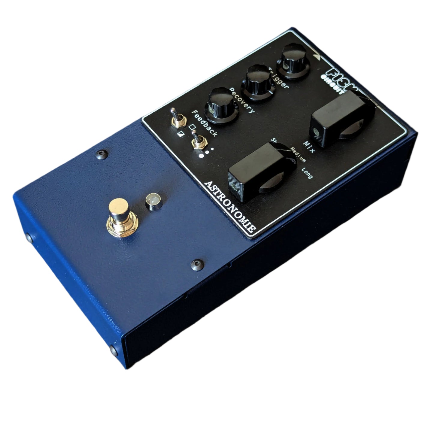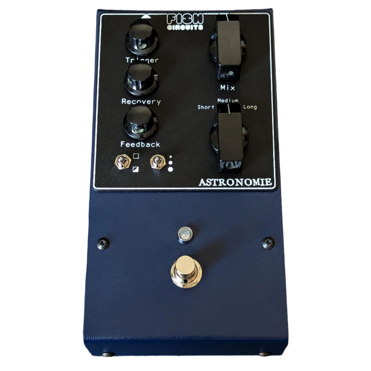 The ASTRONOMIE is a digital spring reverb with 3 decay settings, 3 tone presets, and an adjustable feedback. That's pretty common. What's not as common is the pedal’s ability to dynamically lower the effect’s volume with each note picked. Imagine having a reverb that swells in automatically as you let your chords ring, or playing a tight rhythmic riff which is not muddied while being able to have a long reverb trail once you stop playing. We’re not smart enough to think of every possible way to use this effect, but it’s easy to see how vast the possibilities are once the ASTRONOMIE falls into the hands of a creative mind.