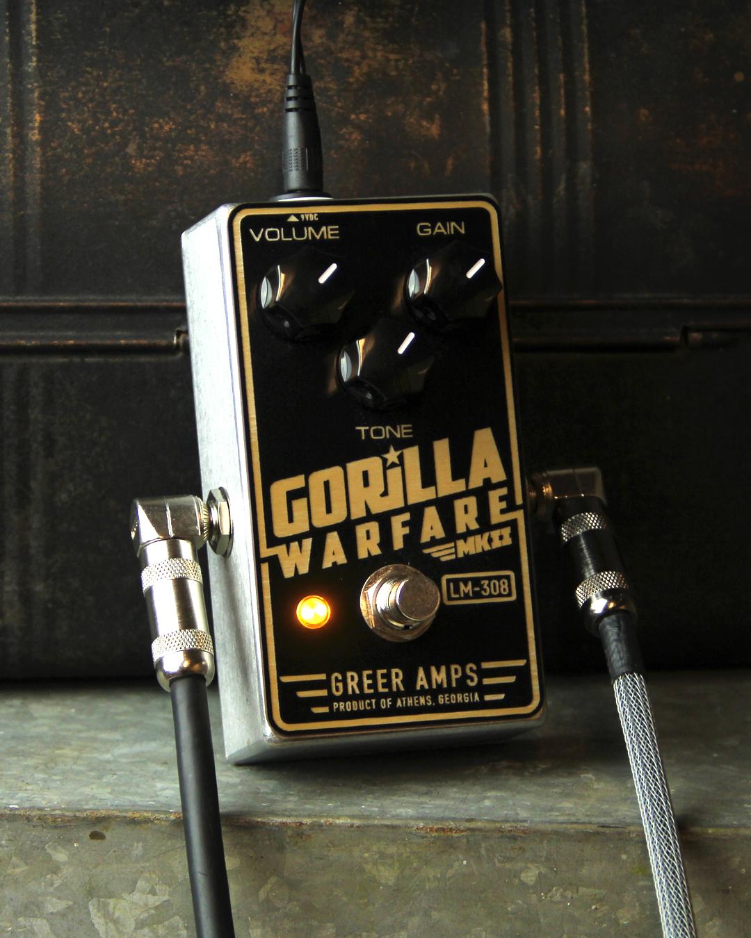 We’ve all had those late nights, filled with loud music, questionable decisions, and the occasional run-in with a big, beastly monster that wants to rip our faces off…right? Well…this is that night, in pedal form. The Gorilla Warfare MKII is a pedal that we have had a ton of requests for over the years. (We even did a super limited run of this pedal a while back, with a different graphic, and a different chip…that was then, this is now, and this…this is better.) I’ve been asked more times than I can count to do a “Greer Amps version of the RAT circuit…and do it right”…well…here it is. This is our angry, aggressive, larger-than-life and not-holding-back version of the old familiar circuit, complete with the good old LM308 chip. That’s an important detail—so we smacked it on the faceplate. This beast is powered by the same vintage chip that sparked folklore galore back in the day. We updated a few things, including the quality of the components used in the circuit, and you know that old Filter knob? Well, we turned it into a Tone control. It covers the exact same territory the original Filter control did, but…when you turn it up, you get more treble! AMAZING, I know! This beast is ready to melt rigs, rip faces off, and go to war. If you’re ready to try to tame this beast, step on up. If you’re ready to rock out, spit fire, and roast your ear holes, the Gorilla Warfare MKII is just what you need.