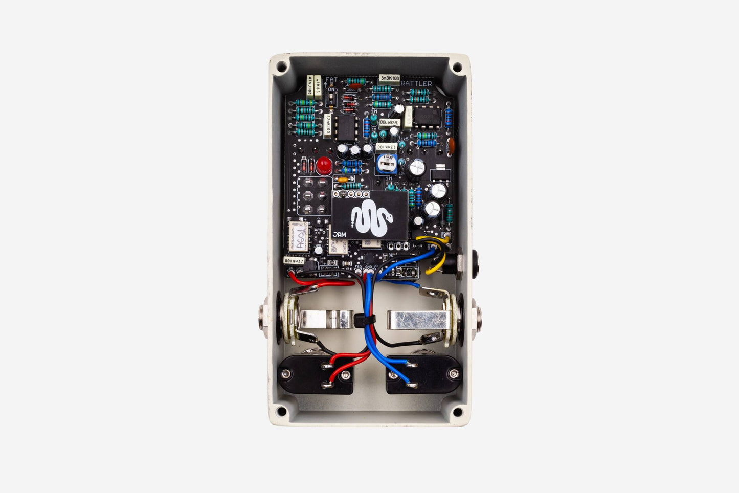 Custom op-amp: With the LM308 chips being long discontinued and hard to find, we developed a custom op-amp to ensure a dependable supply. JAM Pedals proprietary design, featuring discrete components, preserves the open, dynamic, and tube-amp feel that made the original Rattler so revered.