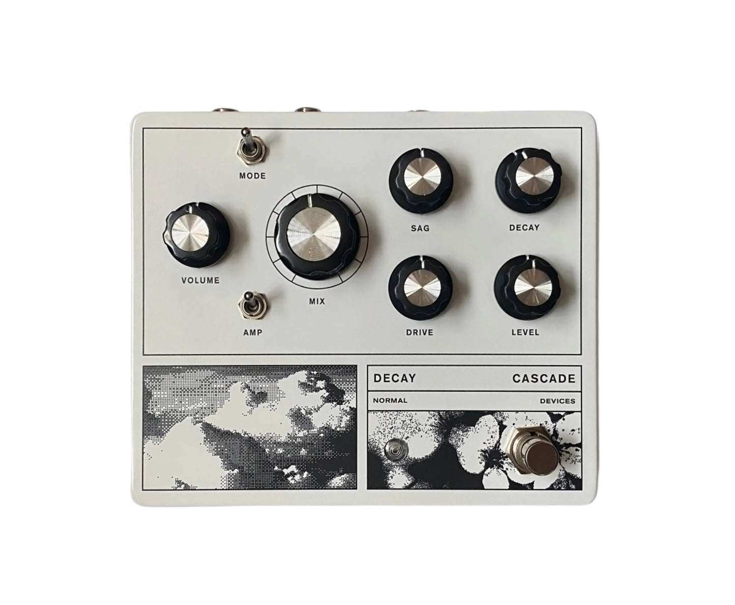 Blends reverb and cascading analog amplification stages to create multilayered textures. Inspired by the sound of running reverb into distortion but with much more blending and layering possibilities, this pedal can produce lo-fi subtlety or slabs of disintegrated noise. Or both.