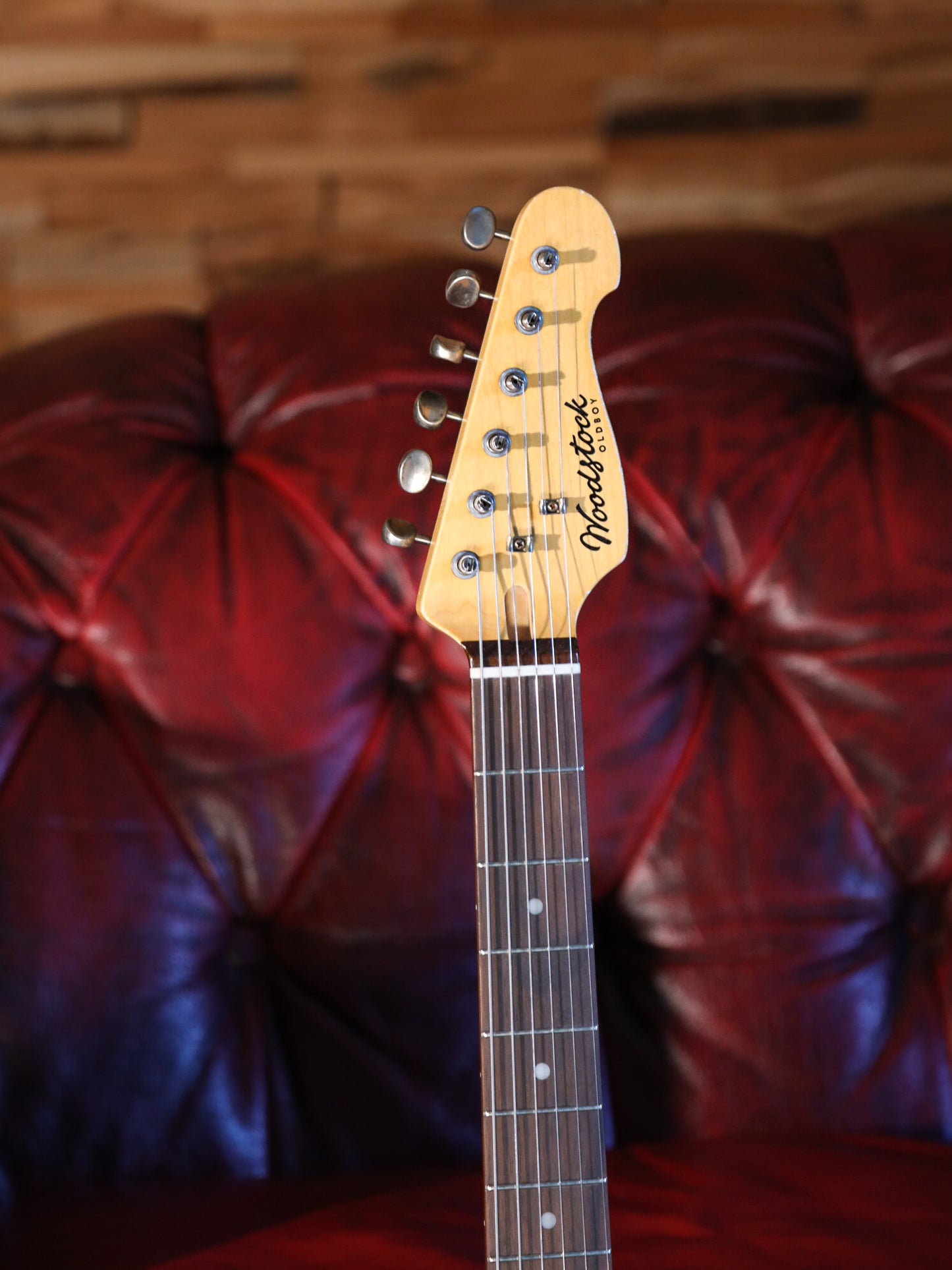 The body of the Woodstock Old Boy was made from alder. The maple neck was fitted with a rosewood fingerboard. High-quality Kluson style tuners ensure high stability tuning. The body was given an aged nitrocellulose finish. 3x Woodstock single coils were installed for the pickups.
